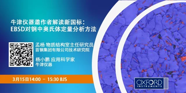 题目:牛津仪器力邀作者与您解读新国标:EBSD对钢中奥氏体定量分析方法