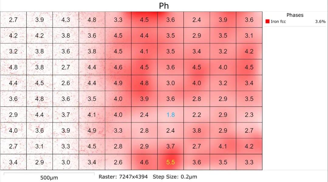 我们还将介绍在定量奥氏体时,EBSD制样和数据采集的技巧,并演示如何利用AZtecCrystal对钢中奥氏体进行准确的定量分析。牛津仪器CMOS EBSD具有高速、高灵敏度的特点,能快速、大面积地采集面分布图数据。以4条带为基础的 Tru-I标定算法,非常健壮,能快速、准确地区分铁素体和奥氏体。AZtecCrystal后处理软件,专门针对大EBSD数据处理进行了优化,能快速、准确地定量奥氏体含量及对奥氏体形态进行测量。