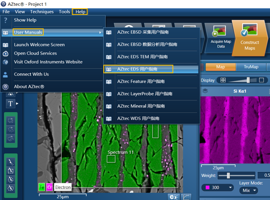 借助于AZtec内嵌的帮助文件,您可以快速了解纳米分析的理论知识和具体的操作步骤,从而更高效地利用AZtec进行数据采集。