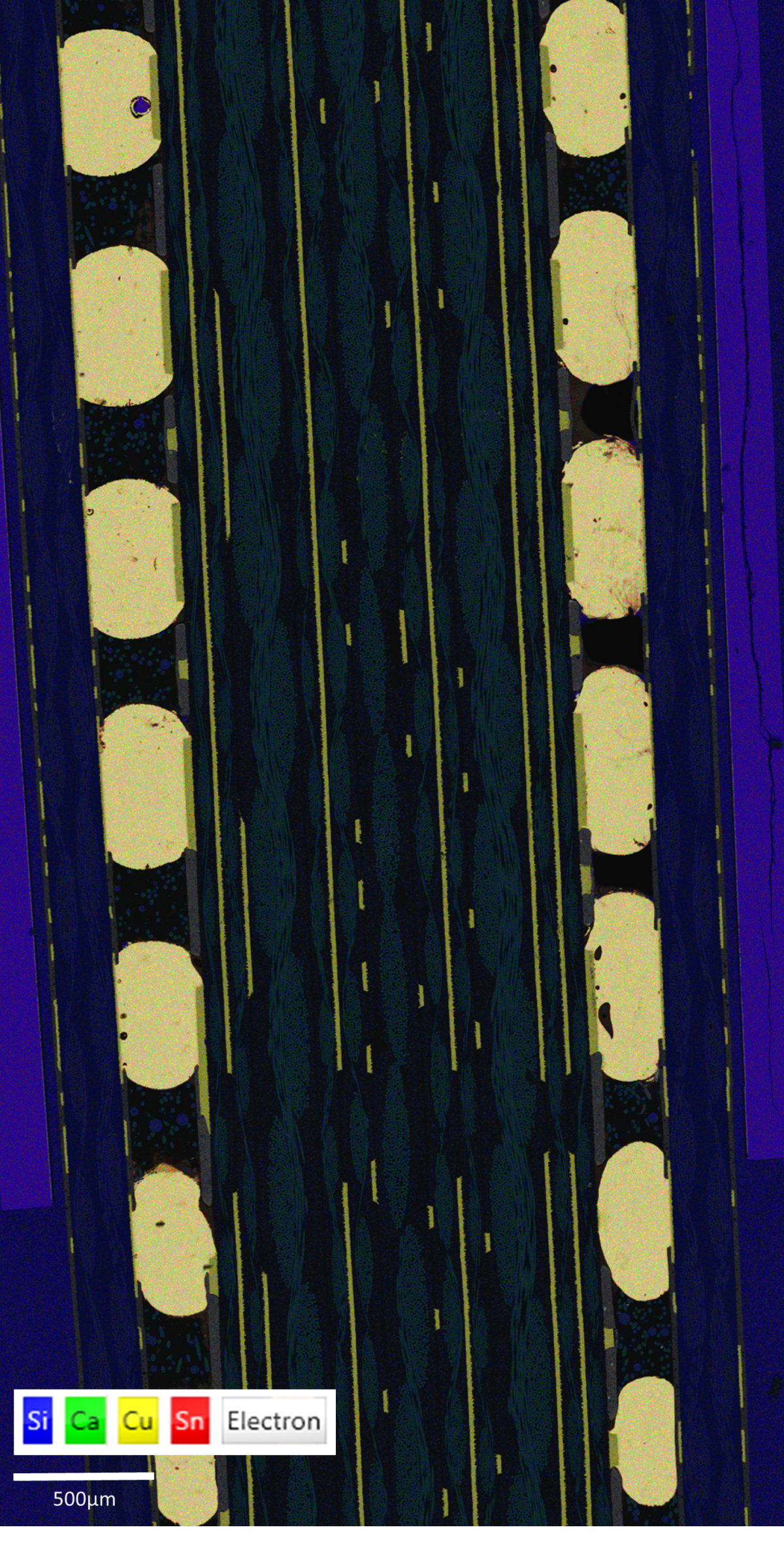 如上所述,电子设备中的结构尺寸跨越多个尺度,这意味着空间分布的信息非常重要。鉴于PCB中通常使用的多种不同材料,背散射电子(BSE)和X射线成像是了解样品最有用、最直观且最省时的方式。