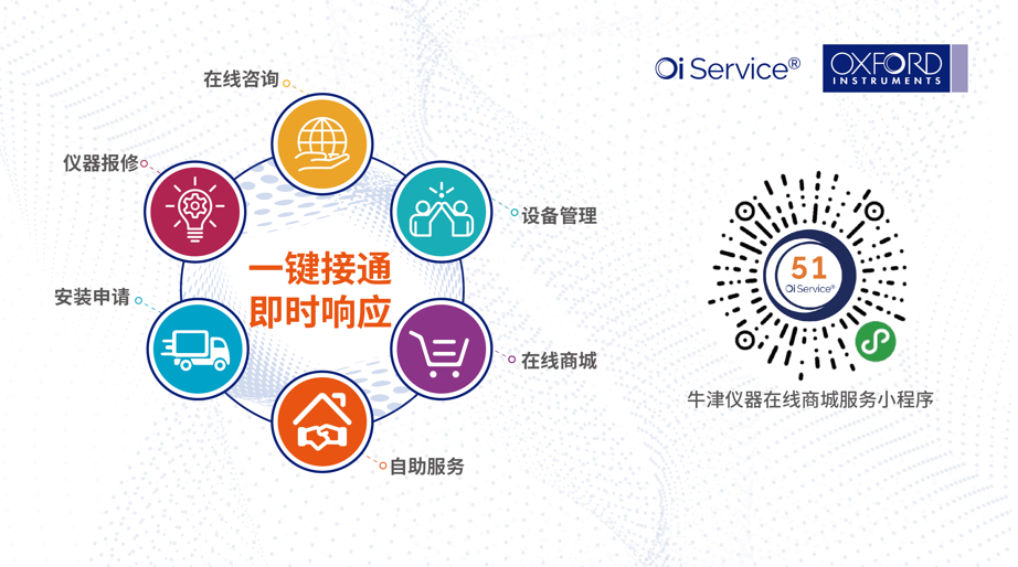 2023年,牛津仪器重磅升级全新牛津仪器在线商城服务小程序。牛津仪器在线商城服务小程序整合了设备报修、在线技术支持、维保升级预约、在线商城等全方位关怀功能,为客户真正实现了 “一键接通、即时响应“ 的使用体验。